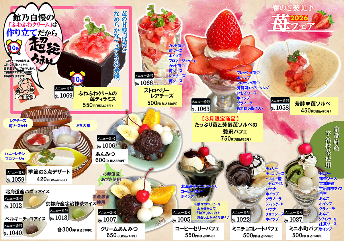 もちろん他にも、アイスや人気の定番パフェなどいろいろご用意しております♪