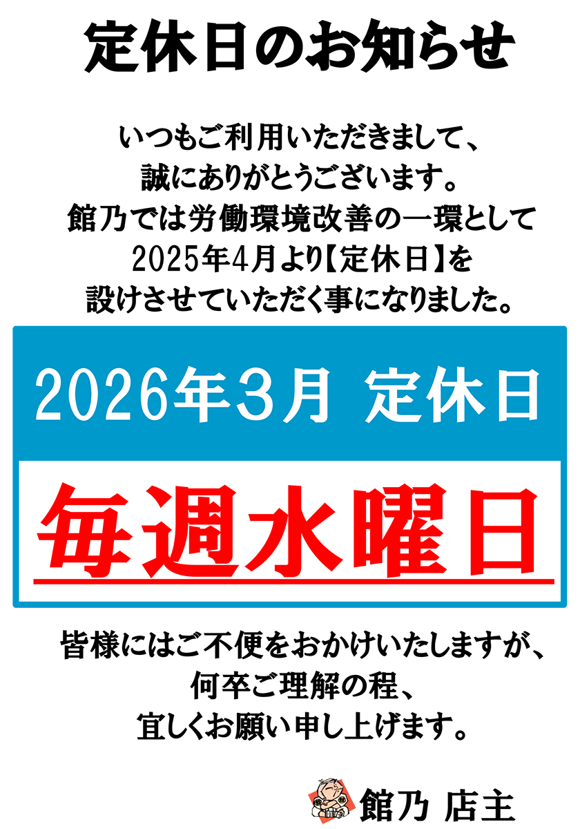 いつも館乃にご来店いただきありがとうございます。