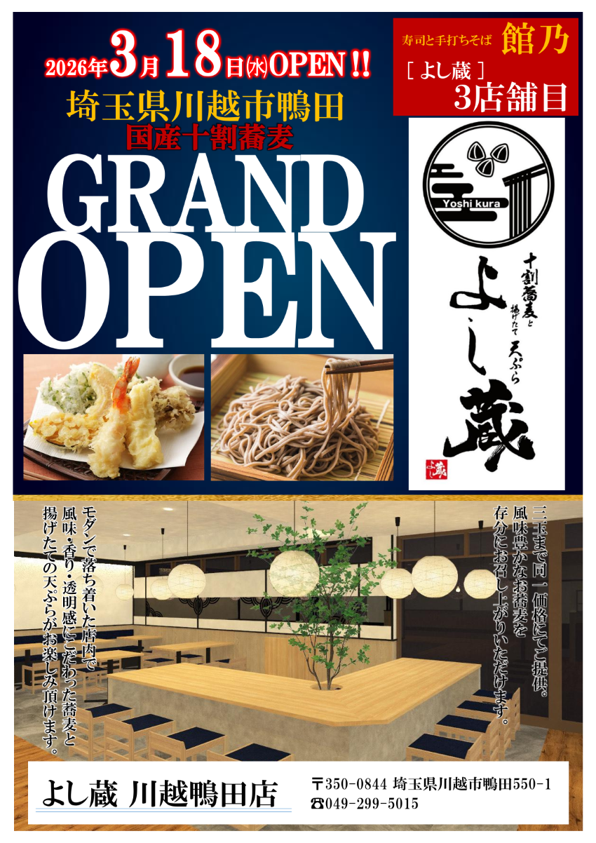 2024.04.23 新業態「十割蕎麦と揚げたて天ぷら よし蔵」オープン!