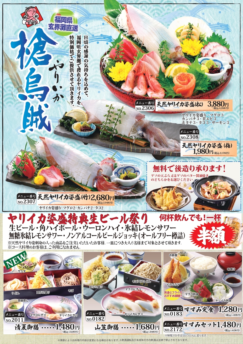 ≪ヤリイカ姿盛特典生ビール祭り≫