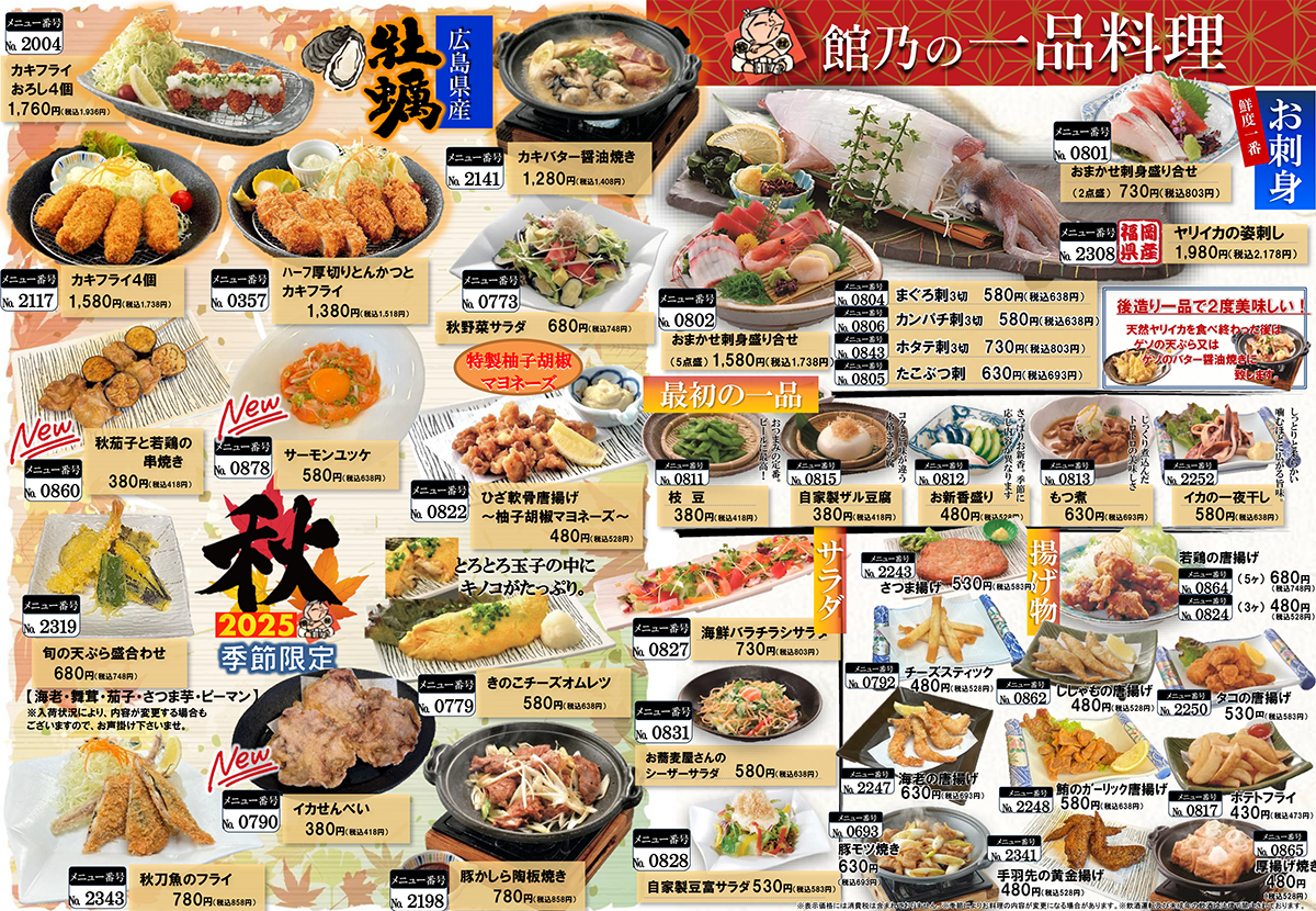 食欲の秋は、館乃で海の幸・山の幸をご堪能ください!!