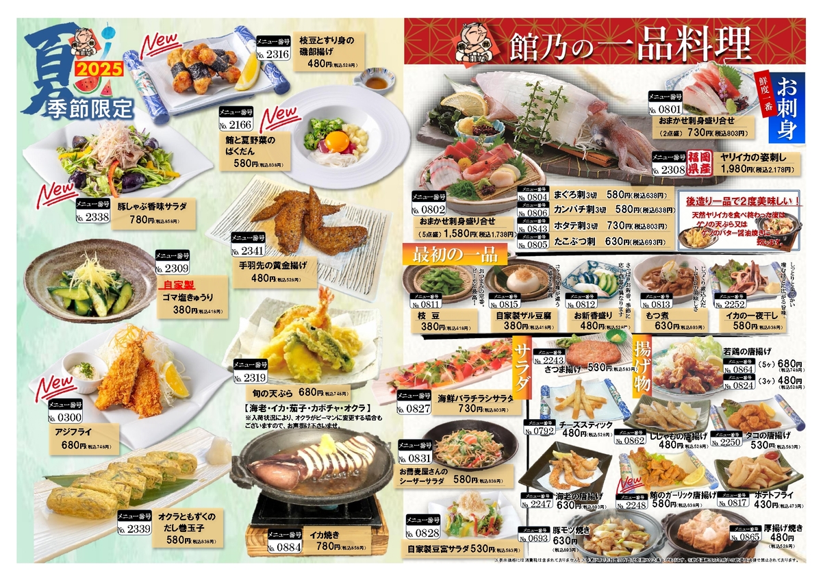 ぜひこの機会に館乃で「天然ヤリイカ」をお楽しみください。皆様のご来店を心よりお待ちしております。
