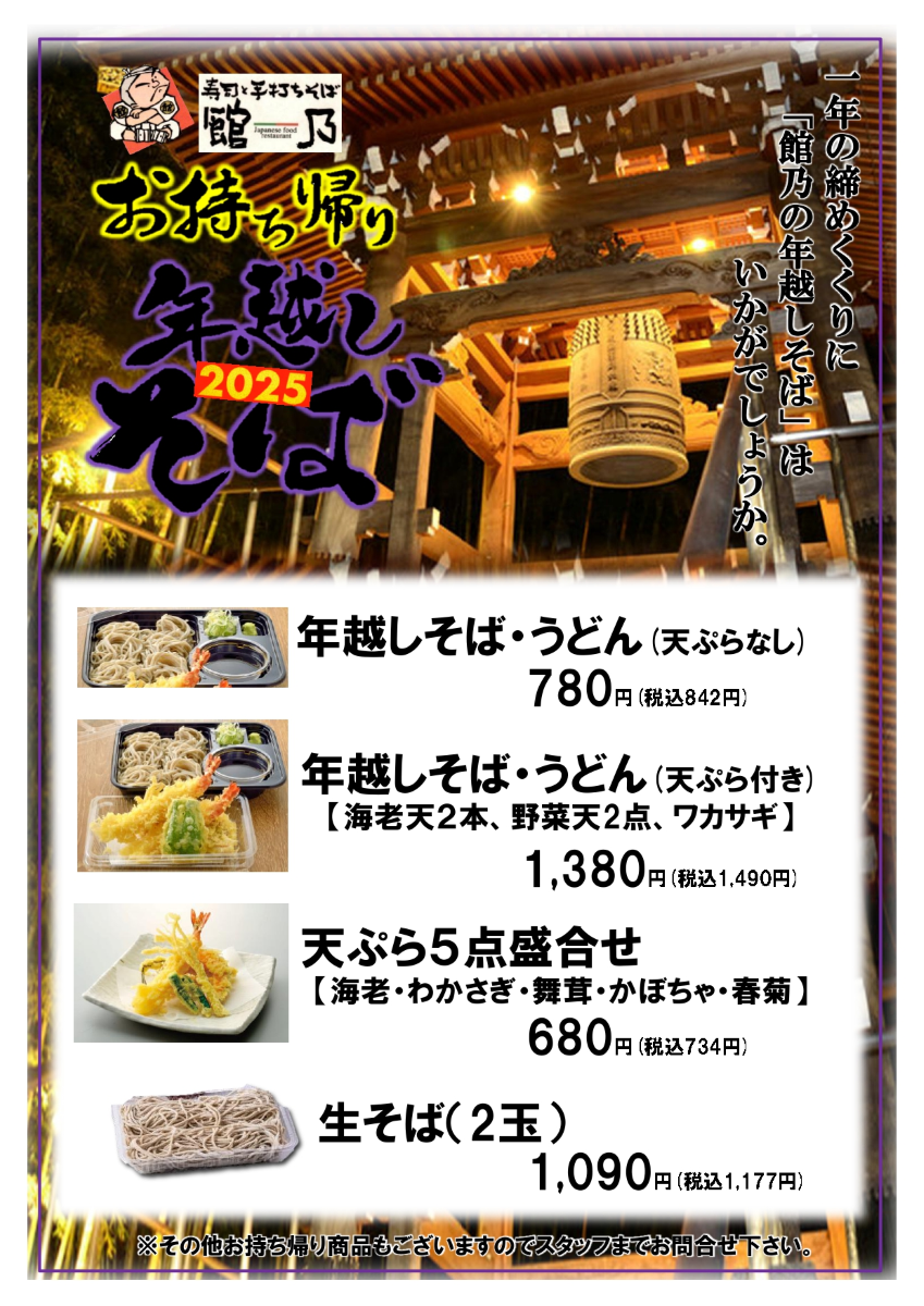 2025.12.01 お持ち帰り年越しそばのお知らせ