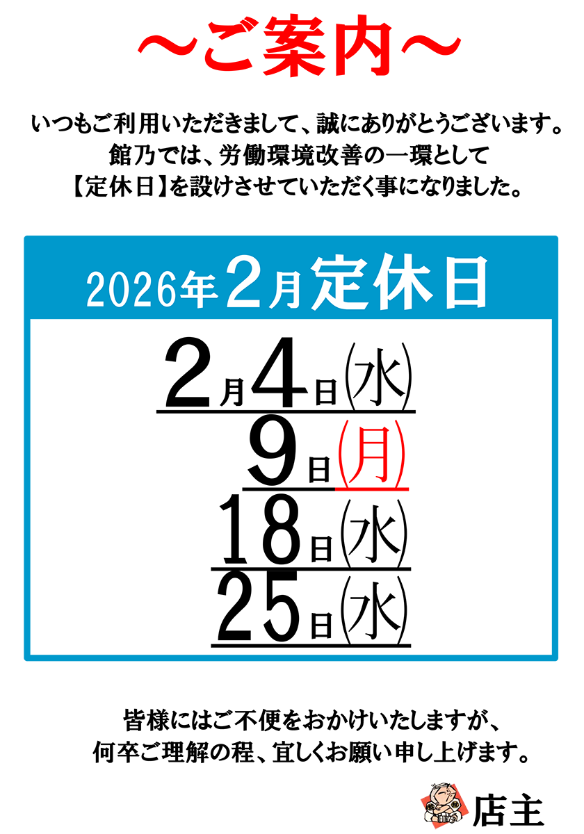 いつも館乃にご来店いただきありがとうございます。